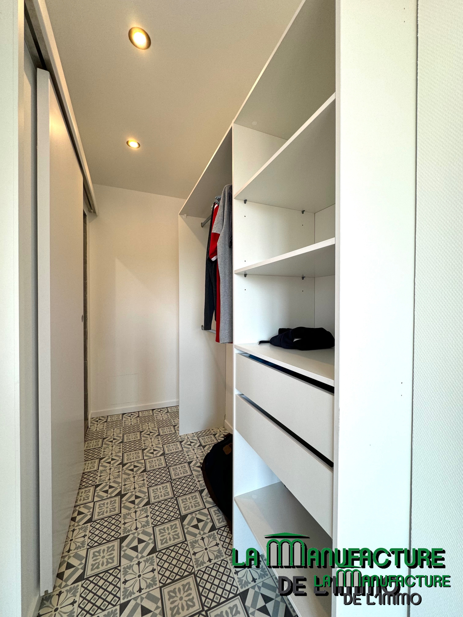 -CHAMBRE AVEC DRESSING (11.94 m²) DONNANT SUR SALLE D'EAU (2.45 m²) - WC SUSPENDU SEPARE (1.30 m²).
