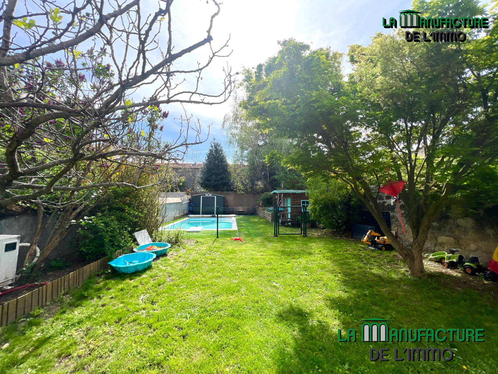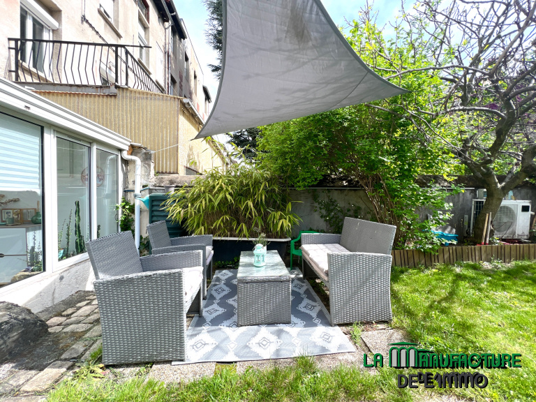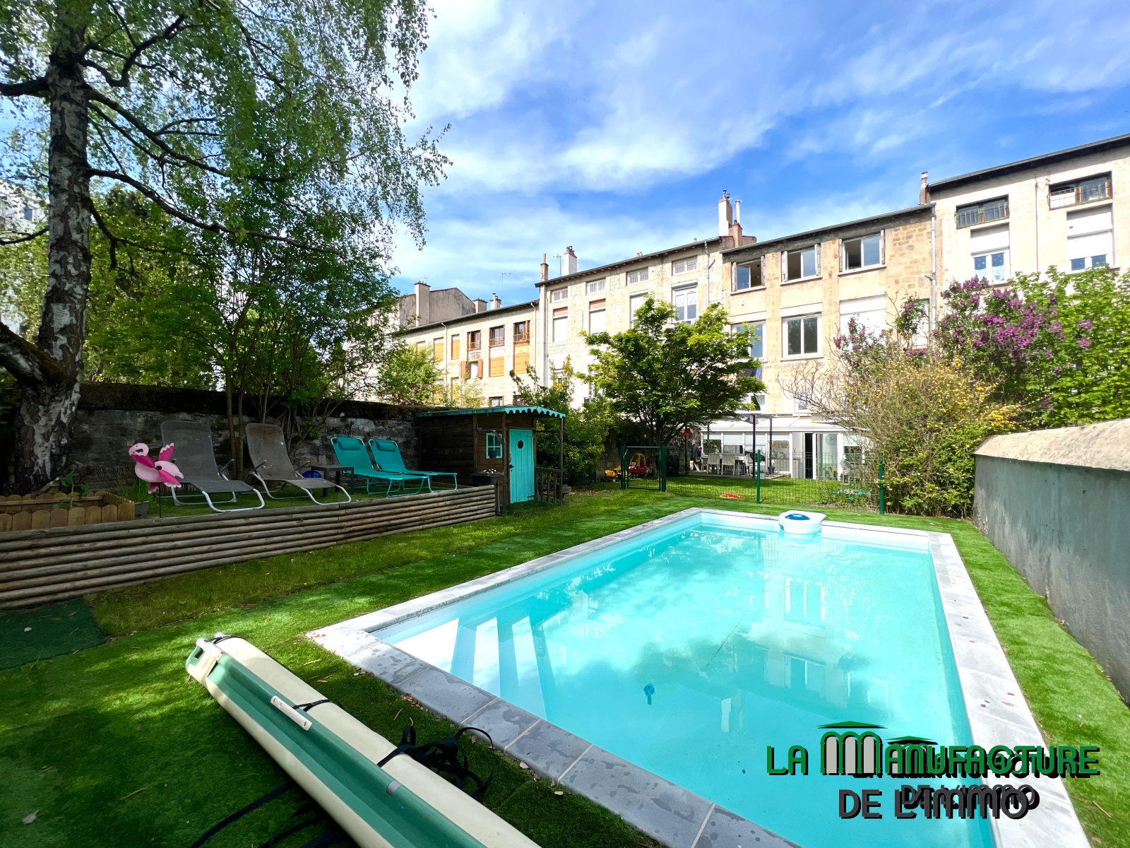 JARDIN PRIVATIF DE 200 M² AVEC PISCINE CHAUFFEE TRADITIONNELLE ENTERREE.