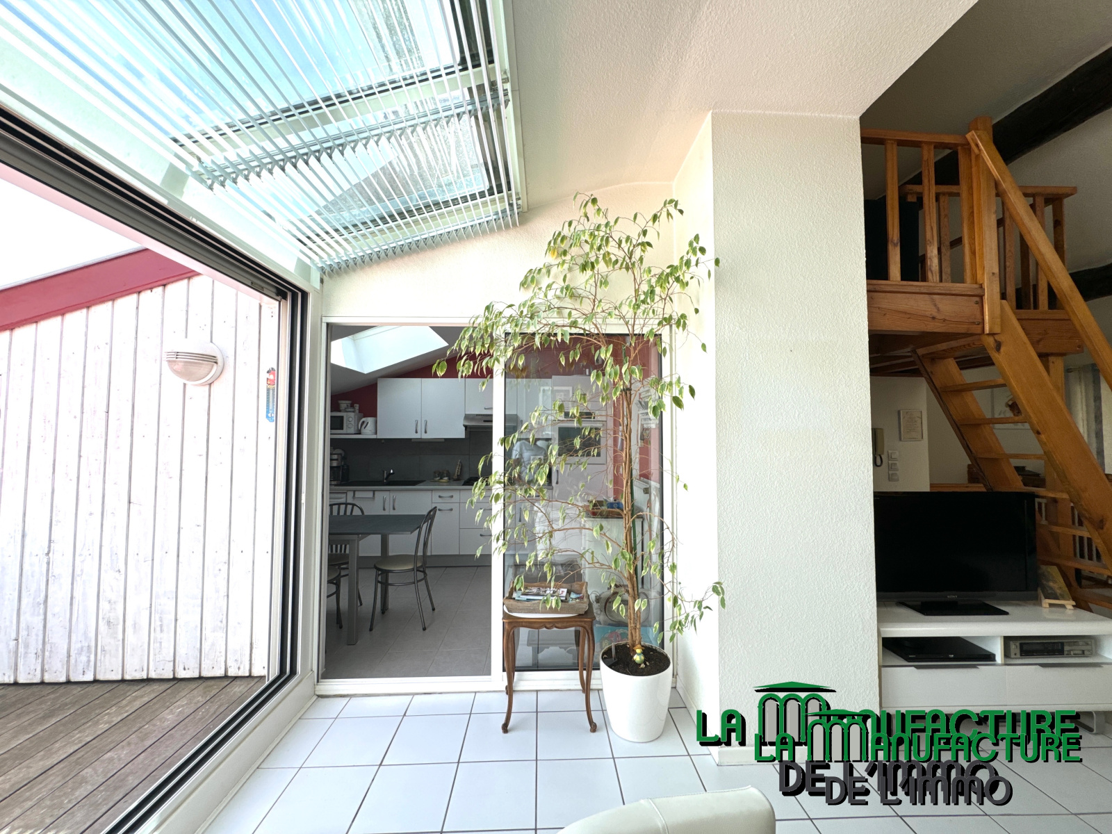 -DOUBLE PIECE DE VIE (37.60 m²) AVEC MEZZANINE (6.75 m²) ET TERRASSE TROPEZIENNE (13.26 m²) ET PLACARD DE RANGEMENT EXTERIEUR (1.78 m²).
